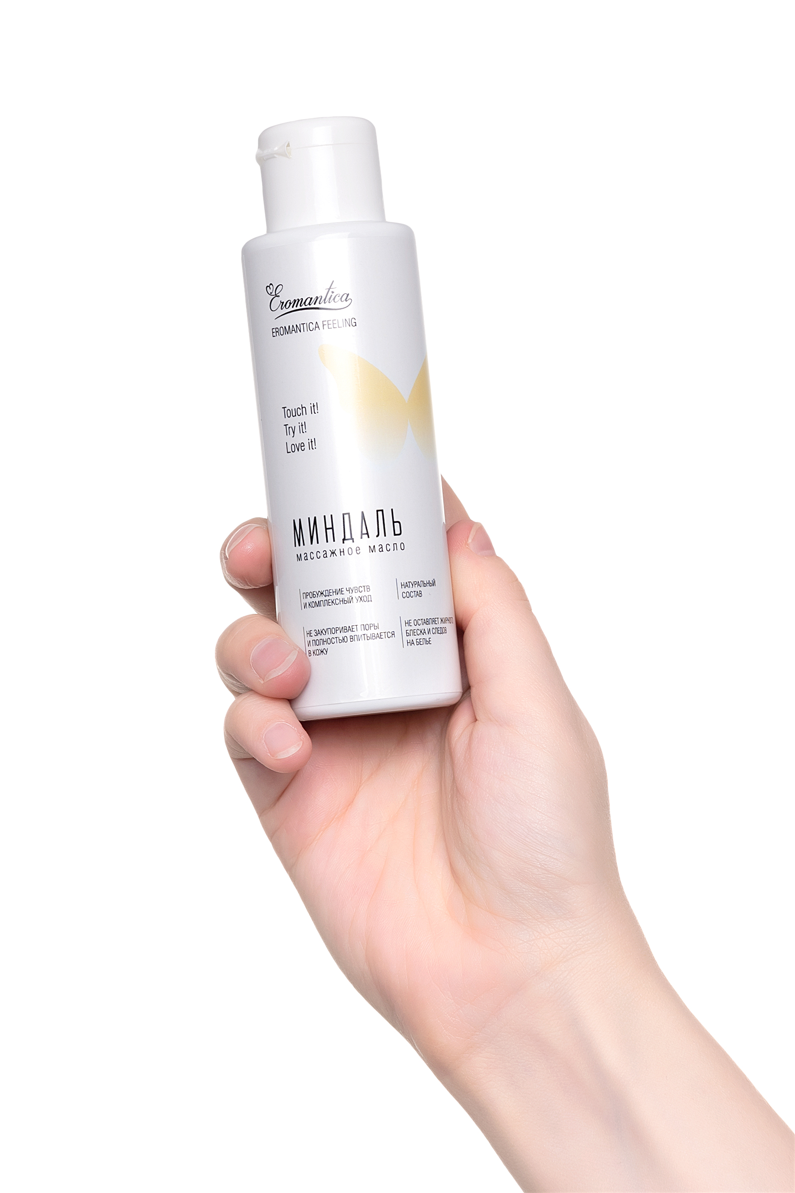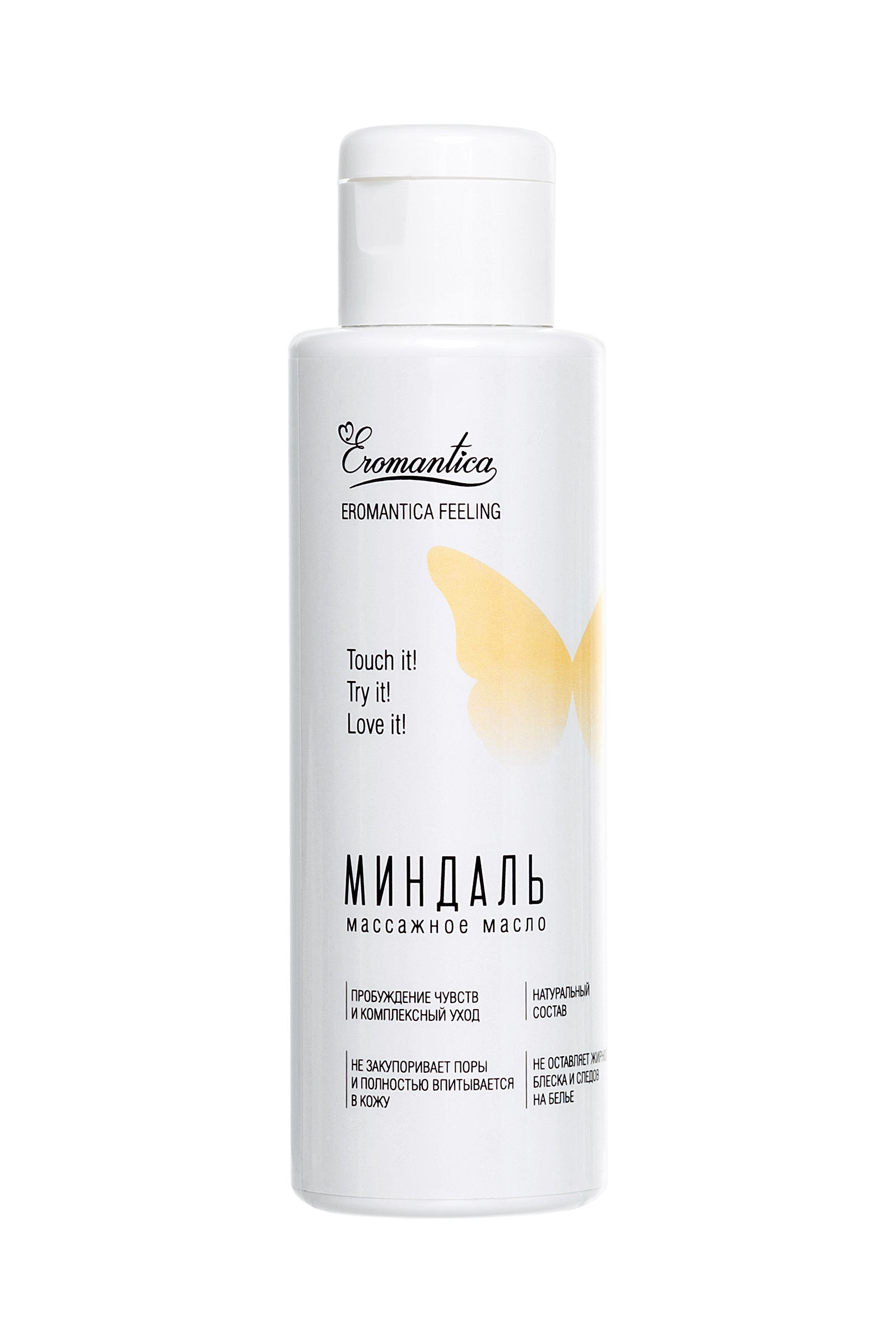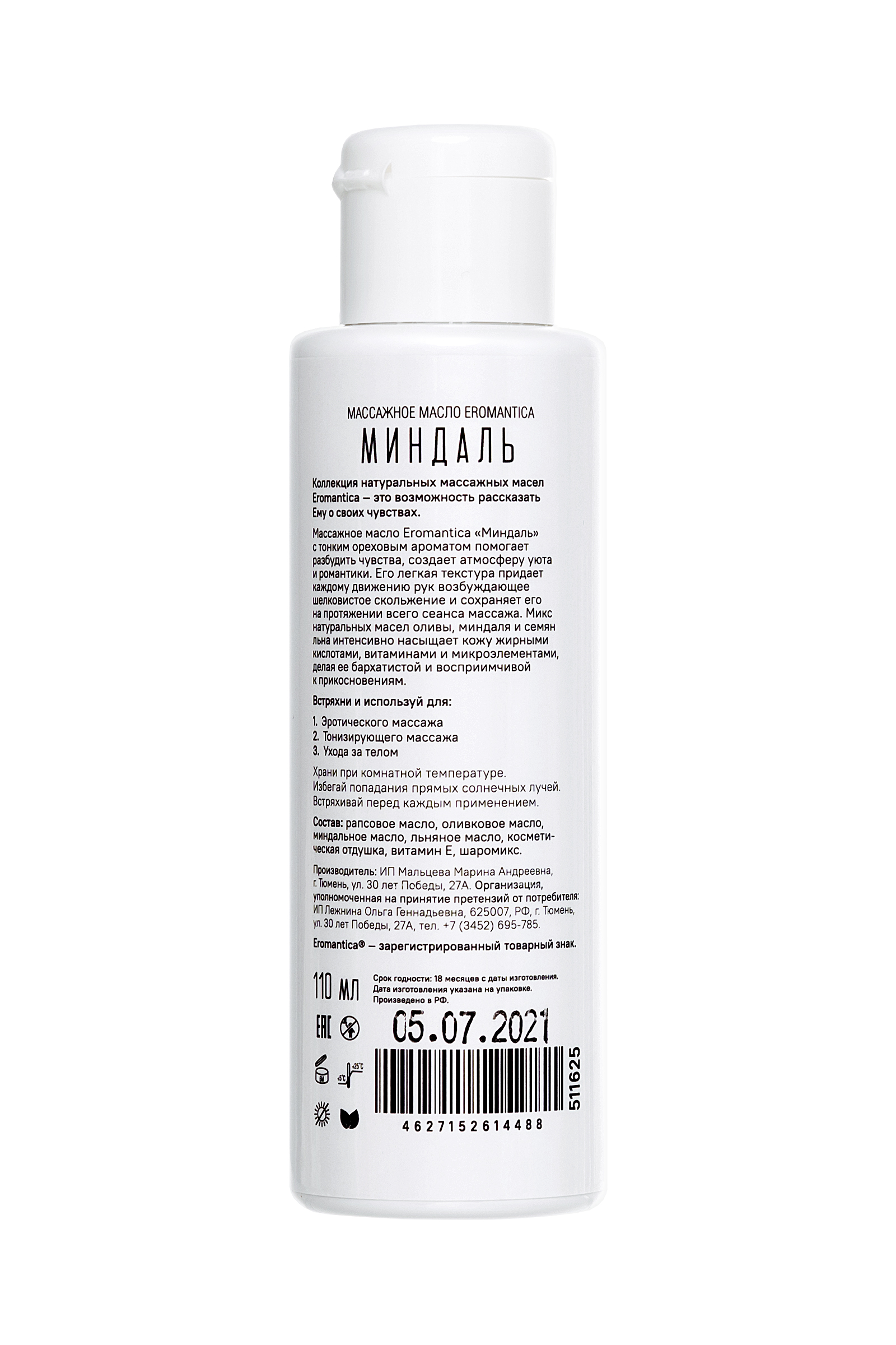 Коллекция натуральных массажных масел Эромантика — это возможность рассказать Ему о своих чувствах. Массажное масло Eromantica «Миндаль» с тонким ореховым ароматом помогает разбудить чувства и создает атмосферу уюта и романтики. Его легкая текстура придает каждому движению рук возбуждающее шелковистое скольжение и сохраняет его на протяжении всего сеанса массажа. Микс натуральных масел оливы, миндаля и семян льна интенсивно насыщает кожу жирными кислотами, витаминами и микроэлементами, делая ее бархатистой и восприимчивой к прикосновениям. Встряхни и используй для: Эротического массажа: согрей масло в ладонях и распредели его по телу партнера плавными массажными движениями. Особое внимание уделяй эрогенным зонам. Тонизирующего массажа: нанеси масло на нужный участок тела и разогрей кожу интенсивными движениями. Затем проработай мышцы, сжимая их пальцами рук. Ухода за телом: нанеси сразу после душа на влажную кожу и равномерно распредели по телу. Храни при комнатной температуре. Избегай попадания прямых солнечных лучей. Встряхивай перед каждым применением.
