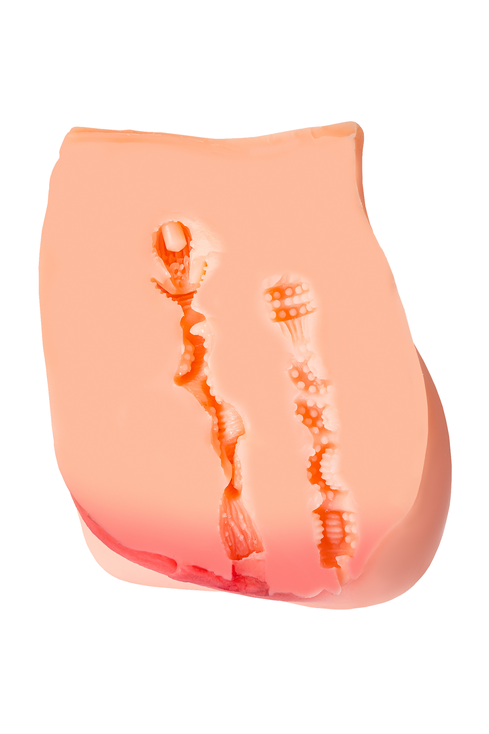 Манящая попка весом 3,7 кг - то, что приятно ощущать в сильных мужских руках. Шелковистый материал напоминает мягкую женскую кожу. Для секса предусмотрено 2 анатомических отверстия с дополнительной стимуляцией: вагинальное и анальное.