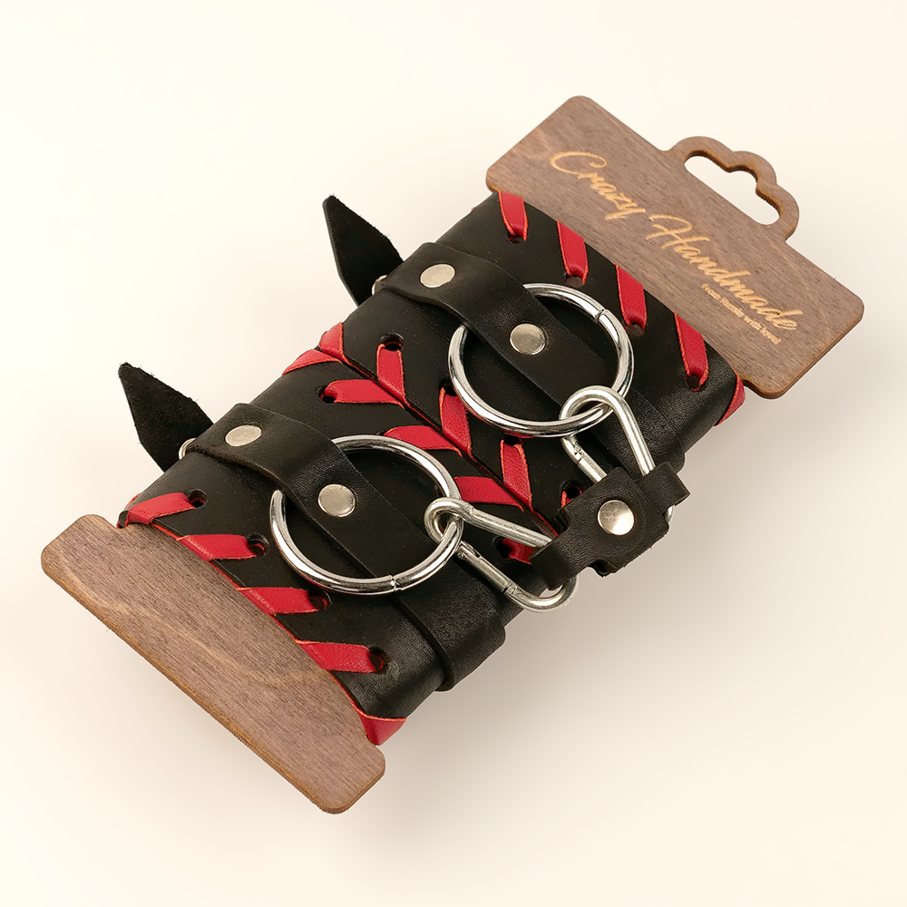 Наручники Крэйзи хенд-мейд из натуральной кожи с красной окантовкой превосходный девайс для ограничения любимой невольницы. Такое изысканное украшение поможет партнёрше в любой ситуации чувствовать себя богиней — даже если её руки закованы в наручники.