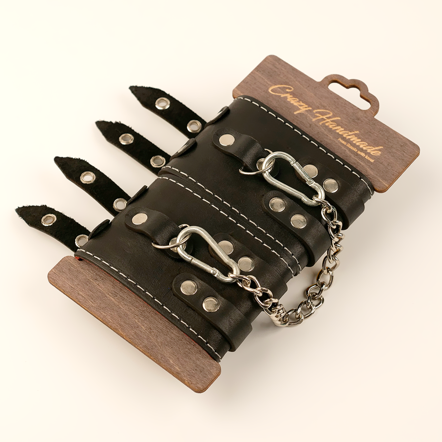Оковы Крэйзи хенд-мейд из кожи с двумя ремнями и красной подкладкой превосходный девайс для ограничения любимой невольницы. Такое изысканное украшение поможет партнёрше в любой ситуации чувствовать себя богиней — даже если её ноги закованы в оковы.