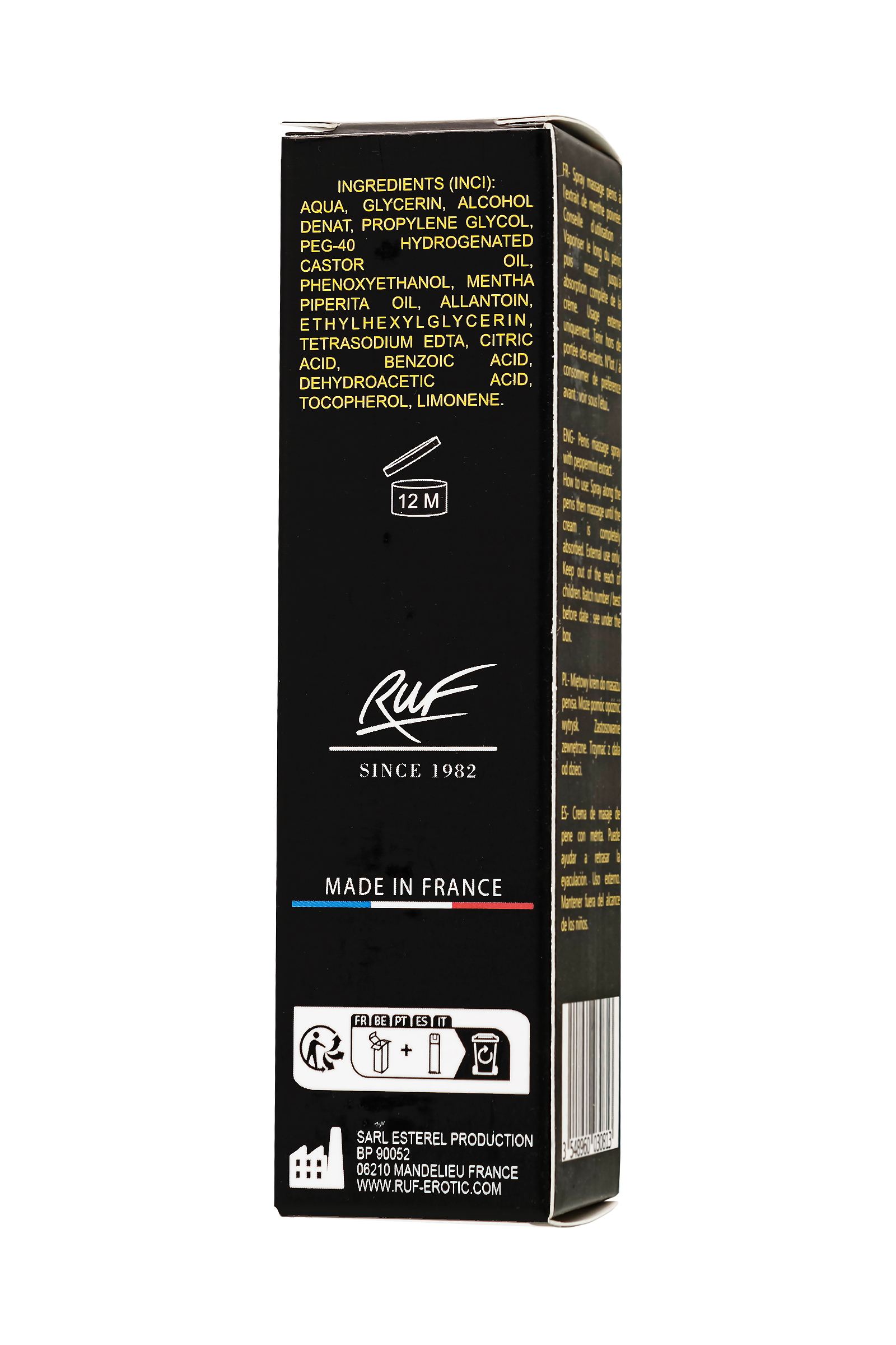 РУФ Retard 907 — это пролонгирующий спрей для мужчин, созданный для предотвращения преждевременной эякуляции и продления полового акта. Специальная формула на основе натуральных компонентов, таких как экстракт перечной мяты, помогает снизить чувствительность пениса, обеспечивая лучший контроль над эрекцией и эякуляцией. Благодаря этому средству, мужчины могут наслаждаться более длительными и насыщенными интимными моментами, даря партнерше максимальное удовольствие. Retard 907 станет идеальным решением для мужчин, которые хотят предотвратить преждевременное семяизвержение и продлить продолжительность полового акта. Если вы стремитесь к улучшению контроля над своими ощущениями и желаете доставить больше удовольствия партнерше, этот спрей поможет достичь этих целей. Экстракт перечной мяты, известный своими охлаждающими и успокаивающими свойствами, уменьшает чувствительность, что позволяет продлить время до наступления оргазма. Удобный объем в 25 мл делает его компактным и дискретным в использовании — вы можете легко взять его с собой в любые поездки. Рекомендации по применению: нанесите небольшое количество спрея на оттянутую крайнюю плоть перед началом полового акта. Эффект наступает через несколько минут. Объем: туба 25 мл Производство: Франция