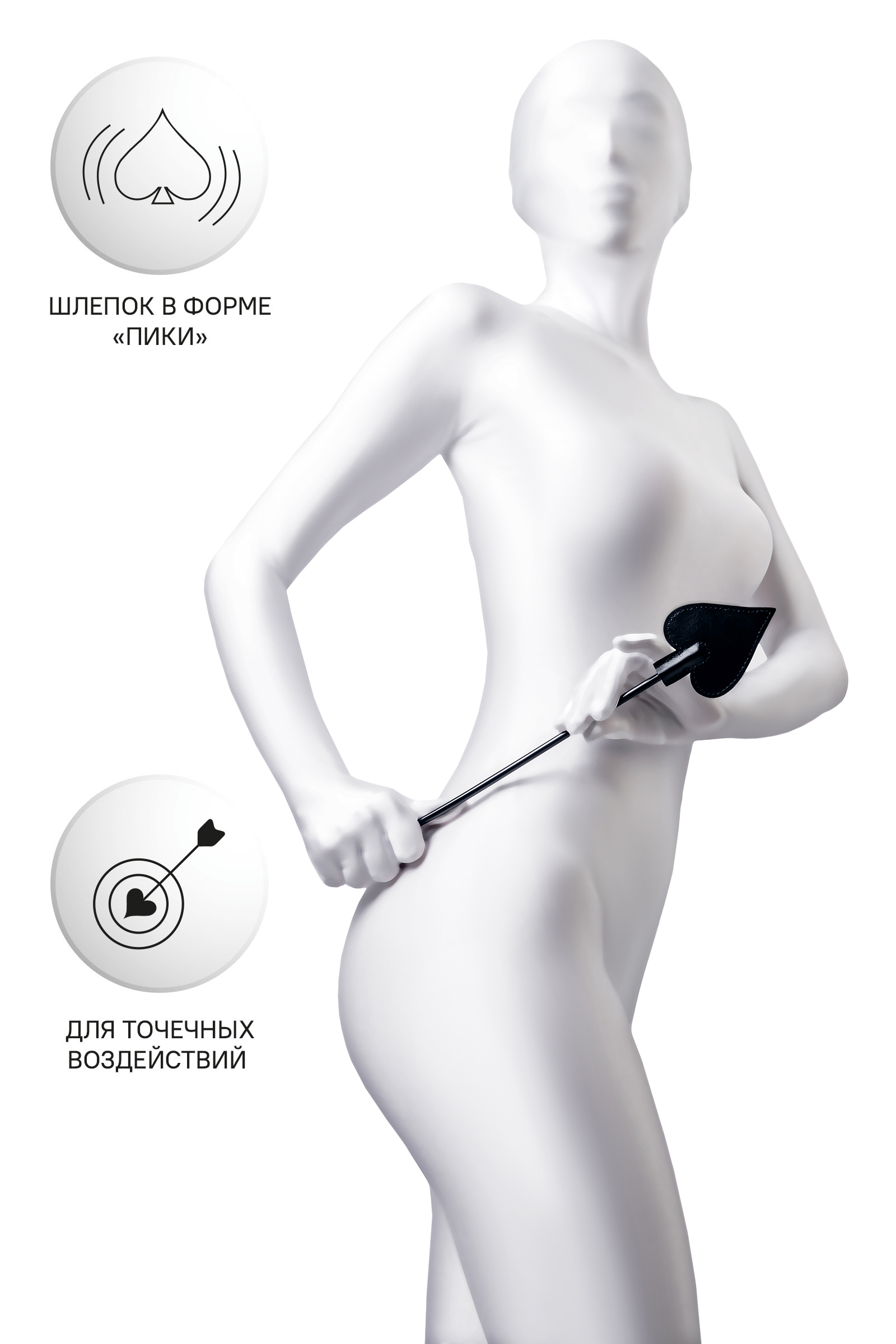 Доминирование и подчинение с помощью ограничения свободы — это еще не все, что вы можете сделать друг с другом. Черный стек Ано́нимо с наконечником в форме сердечка-пики пригодится для ощутимого наказания непослушного партнера. Хлесткие точечные шлепки или указка – заигравшийся сабмиссив быстро поймет свою ошибку. Каждый неверный шаг, звук или поворот головы будет немедленно наказан с помощью жесткого стека из PU кожи. Сочетание напряжения, власти и элегантности – с этим стеком можно наказать провинившегося сабмиссива и еще раз продемонстрировать кто в паре главный. Материал: PU кожа Цвет: черный Общая длина: 36 см Длина наконечника: 8 см Ширина наконечника: 7 см