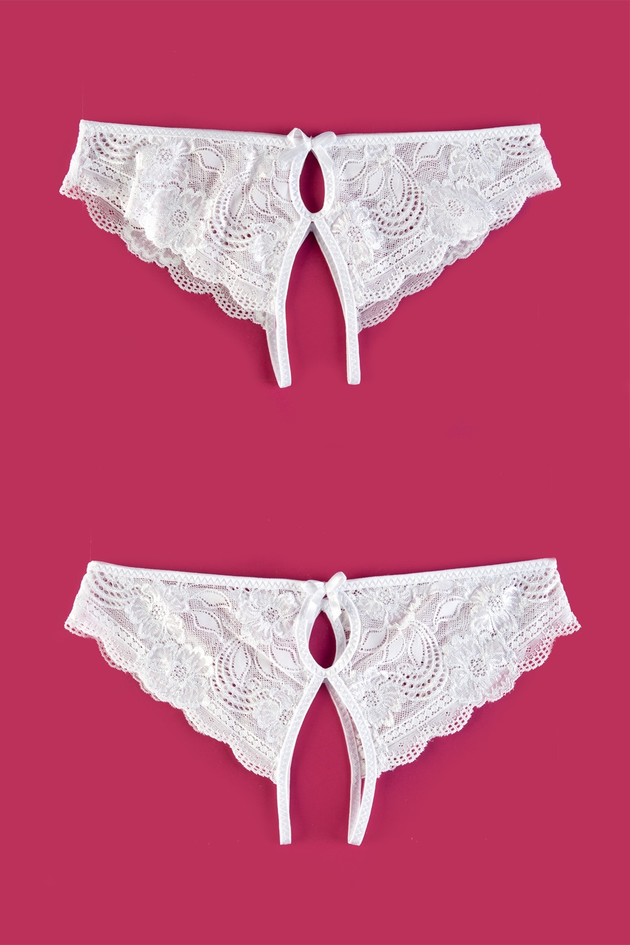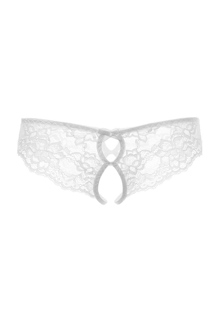 Эротические трусики кружевные, эластичные, с фигурными вырезами, с атласными бантиками, свободный кружевной край
