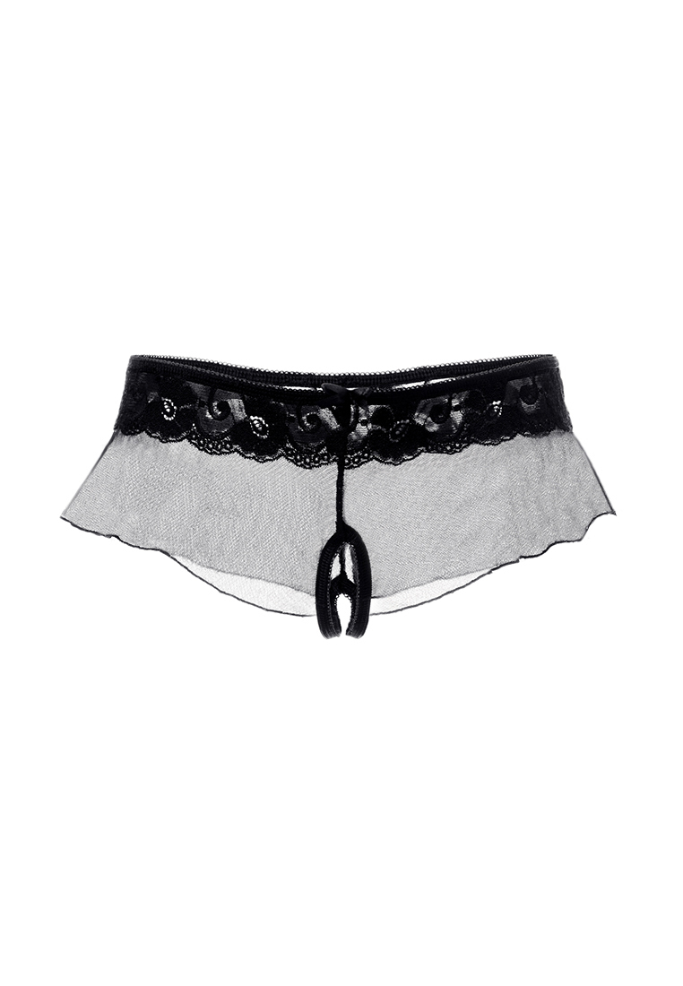 Эротические трусики-юбочка из стрейч-сетки, с кружевной кокеткой, с атласным бантиком спереди.